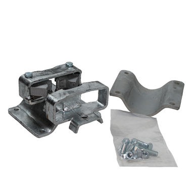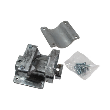 Hot-dip galvanized double latch with clamp-on fit for heavy-duty gate security and long-lasting corrosion resistance. Designed to securely attach gates or panels using a clamp-on system.